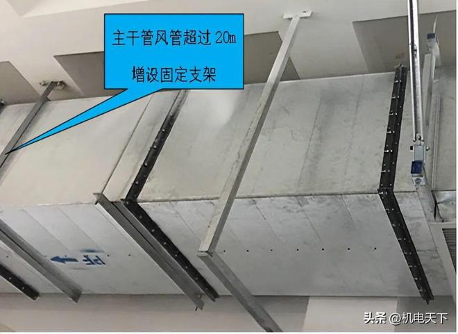 当水平悬吊的主,干风管长度超过20m的应设置防止晃动的固定支架,且每个系统不应少于1个