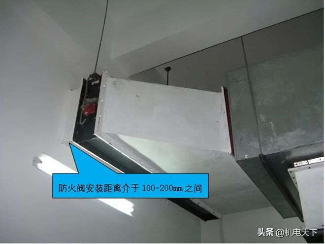 防火阀、排烟阀(口)的安装方向、位置应正确。防火分区隔墙两侧的防火阀,距墙表面不应大于200mm,不应小于100mm