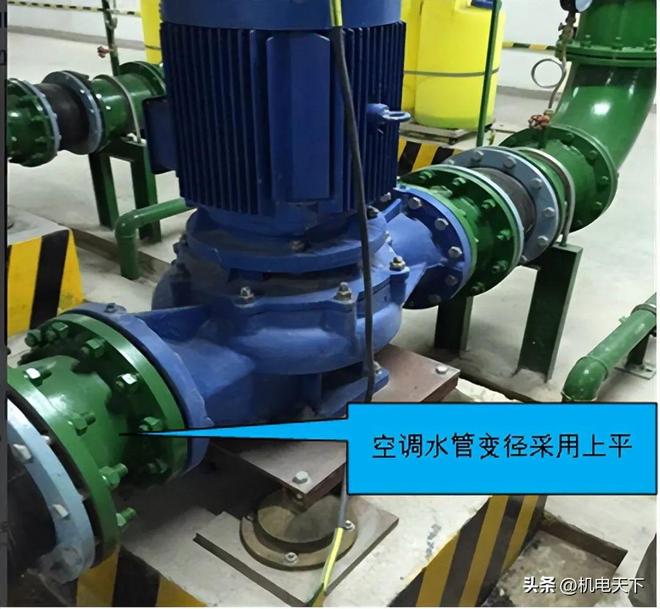 空调水管的干管严禁采用带螺母的活接头,管道连接不得使用铸铁外丝连接件。空调水管的变径应采用上平偏心变径,变径处距管道三通250-300mm的范围内