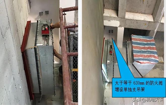 风管末端(不大于400mm)必须单独设置支吊架,当矩形风管边长大于2500mm或圆形风管直径大于2500mm时,支吊架规格型号应经设计确认。