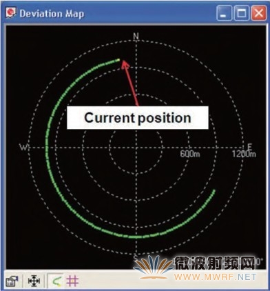 测试方法是首先启动矢量信号源上的 GPS 仿真,启动动态移动场景,设置一定的移动轨迹,连续运行仿真。接着启动 GPS 接收机进行定位。典型的 GPS 测评软件提供位置确定信息。这些数据 (通常为经度、纬度和高度信息) 可以转换成地心固地笛卡尔坐标 (ECEF),用于测评仿真位置与 GPS 接收机计算的位置的偏差,同时测量移动速度的精度,还可以通过地图查看移动轨迹是否正确。参见图的典型移动轨迹信息。